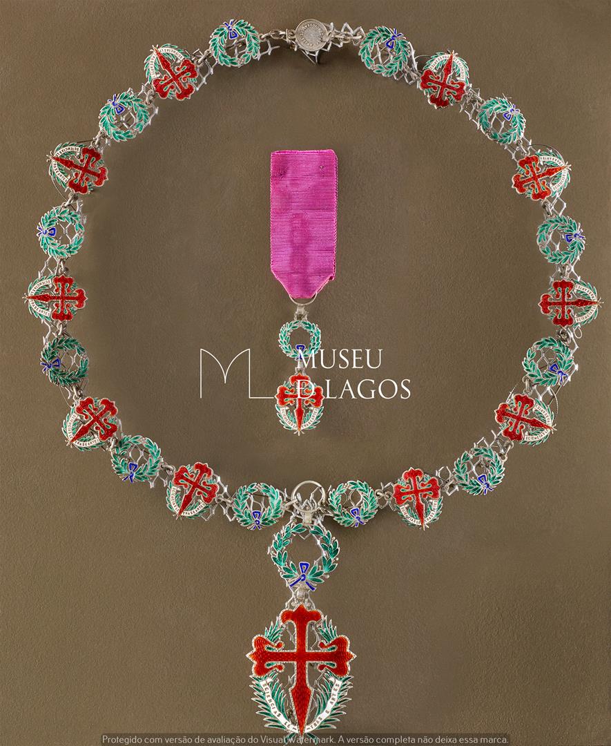 Colar de Cavaleiro da Ordem Militar de Sant'Iago da Espada, distinção atribuída ao Dr. José Formosinho como reconhecimento nacional pela sua obra no âmbito da arqueologia e museologia. Composto por 11 peças com a Cruz da Ordem de Sant'Iago de Espada e 13 peças com a Coroa de Louros.
