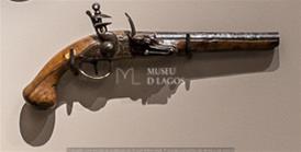 Pistola de pederneira com cano cilíndrico de alma lisa, com carregamento pela boca e com ouvido, na parte lateral direita, junto à culatra. Cão do tipo pescoço de cisne. Falta vareta. A coronha é lisa e cilíndrica, com espessamento na extremidade.